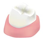 大きな虫歯や深い虫歯の場合、歯と歯がぶつかり合う際の力に耐えるようにするため、虫歯の箇所以外に歯の周囲も削って被せることになります。2と同じく一度型を取りますが、歯に丸ごとかぶせる、被せ物を作ることになります。治療には数回通う必要があります。