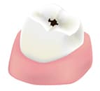 虫歯ができ始めの状態。定期健診で早めに虫歯を発見し、すぐに治療できます。