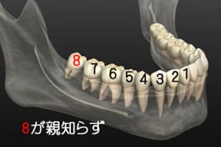 - 親知らずが横に押して、歯並びに影響が出ていている