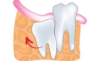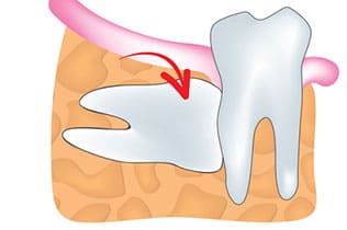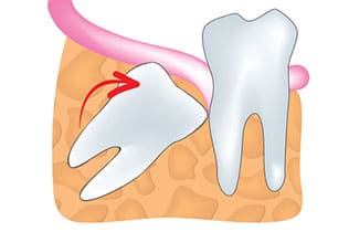 親知らずが斜めに生えて隣の歯にぶつかって圧迫してしまうタイプです。